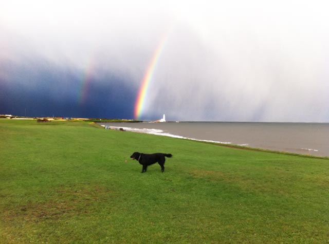 The very next day, I was walking my friend’s dog in Whitley Bay and I saw the most magnificent double rainbow. I had seen a few rainbows before but never a double one. I wouldn’t have even spotted it if I hadn’t seen another dog walker staring and pointing his camera phone at it. I had been feeling really grumpy as a few minutes ago it had been teaming with rain and I was totally drenched and freezing cold but this turned to elation and I can remember exclaiming “Oh wow!!! That’s amazing! How beautiful! I wonder if that could be my ‘sign’?”